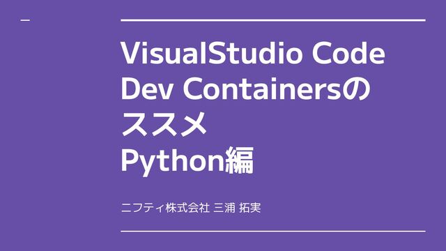 VisualStudio Code Dev Containersの ススメ Python編 ニフティ株式会社 三浦 拓実