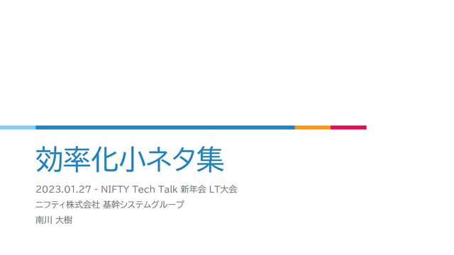 効率化小ネタ集 2023.01.27 - NIFTY Tech Talk 新年会 LT大会 ニフティ株式会社 基幹システムグループ