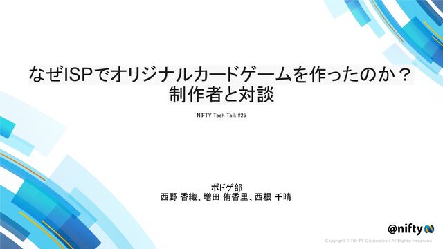 登壇者 ニフティ株式会社 西野 香織、増田 侑香里、西根 千晴