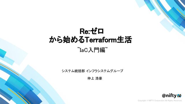 イベント これから始めるTerraform超入門! NIFTY Tech Talk #23 https://nifty.connpass.com/event/337326/