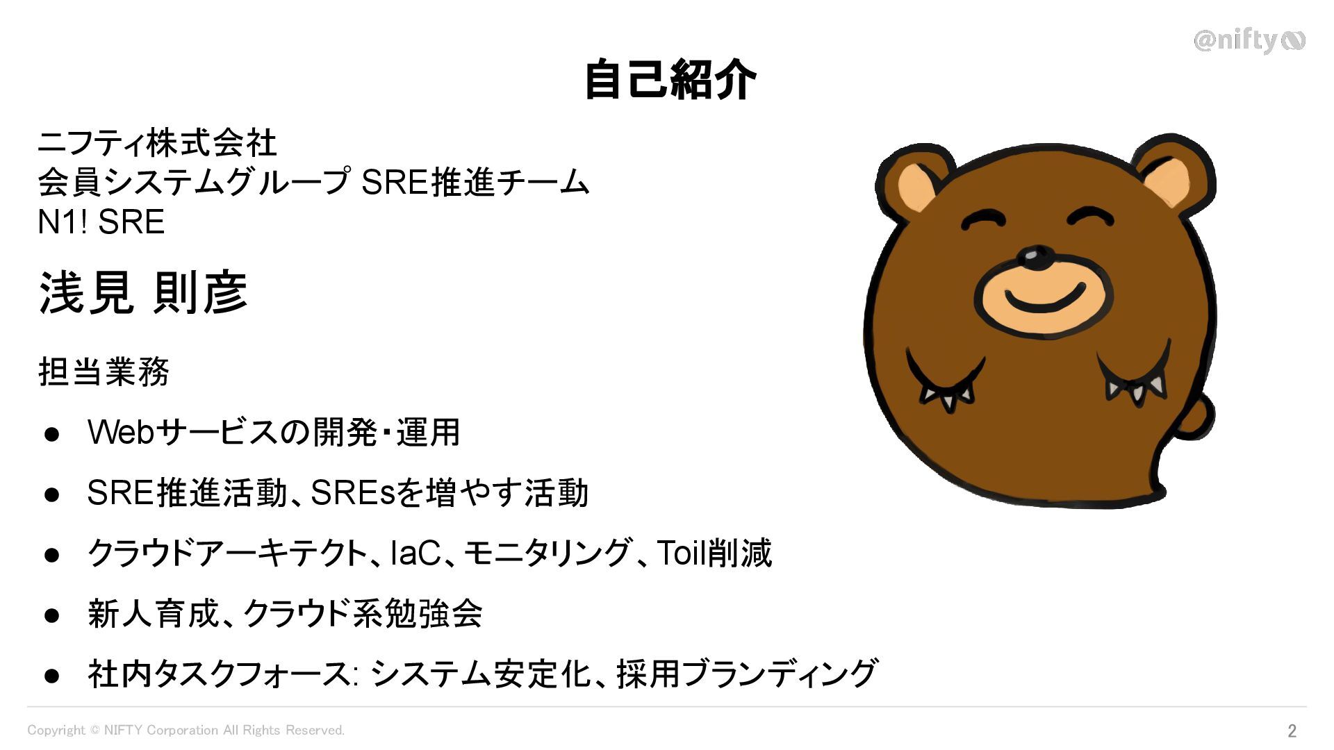 登壇者 ニフティ株式会社 N1! SRE 浅見 則彦(https://github.com/rubihiko)