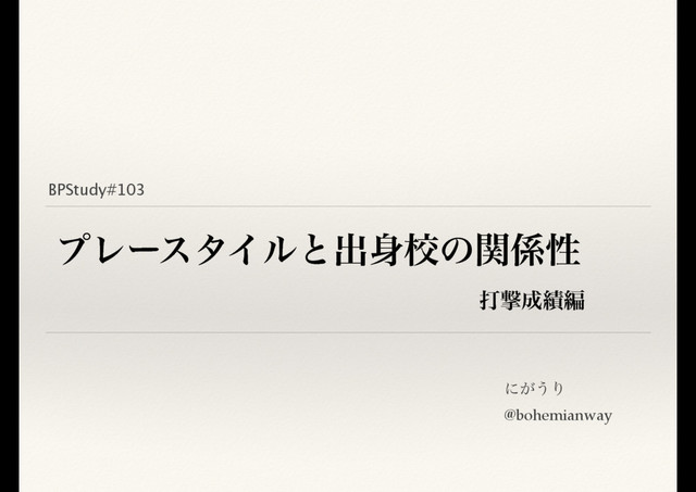 Baseball Play Study 2016 プロ野球シーズン開幕直前スペシャル 「プレースタイルと出身校の関係性 (打撃成績編) 」 発表資料です。