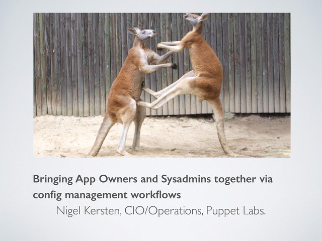 Too often application owners and systems administrators end up in an adversarial relationship due to mismatching workflows and expectations. In this talk Nigel Kersten will cover best practices for configuration management workflows that enable application owners and systems administrators to work together to ship reliable applications on top of reliable infrastructure. The principles covered in this talk will be applicable to any modern configuration management system, however concrete examples and demos will be done using Puppet Enterprise.