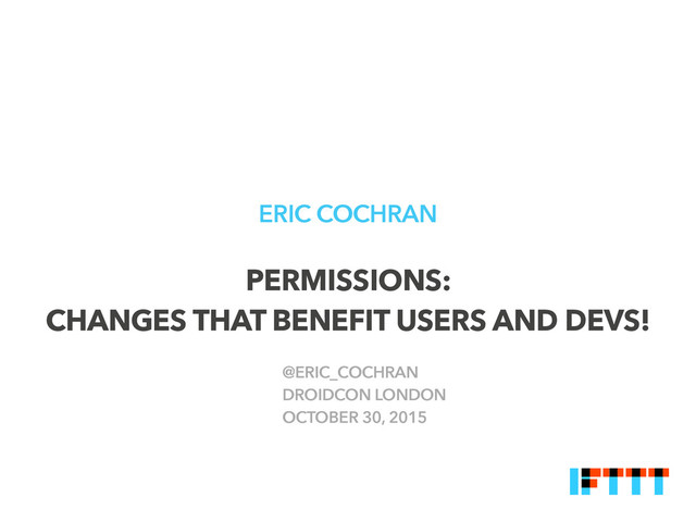 PERMISSIONS GRANTED BY DEFAULT • EMPTY DATA WHEN USERS EXPLICITLY DENY PERMISSIONS • PRE23 PROTECTION • WRITE_SETTINGS IS NO MORE • SYSTEM_ALERT_WINDOW IS GRANTABLE • 6.0: GET_ACCOUNTS NOT NEEDED FOR YOUR OWN ACCOUNT