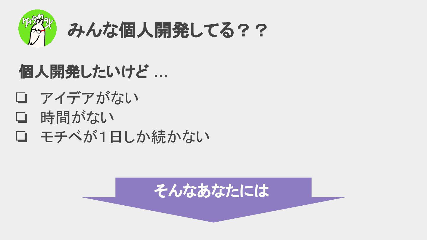 みんな個人開発してる?? 個人開発したいけど … ❏ アイデアがない ❏ 時間がない ❏ モチベが1日しか続かない そんなあなたには