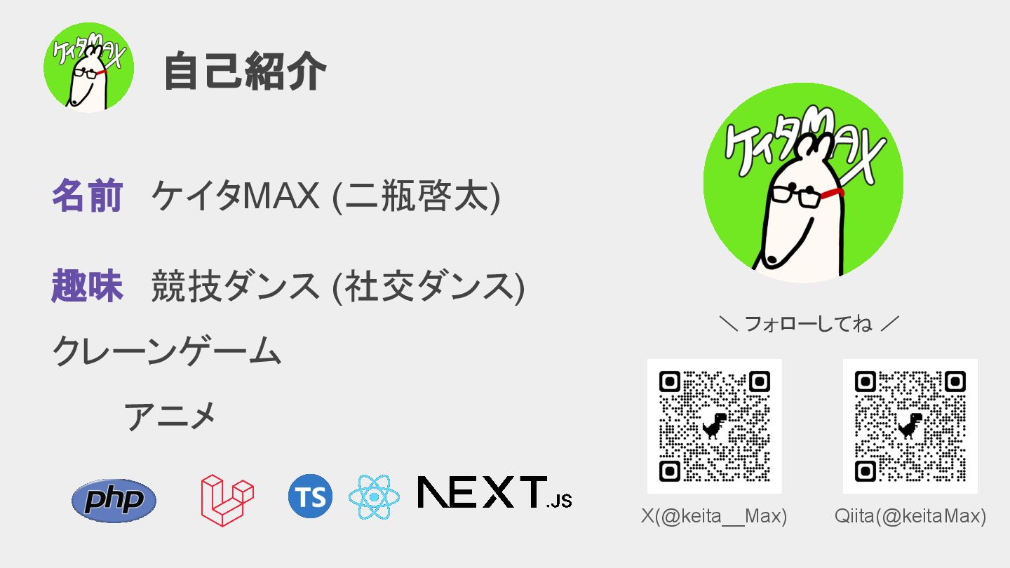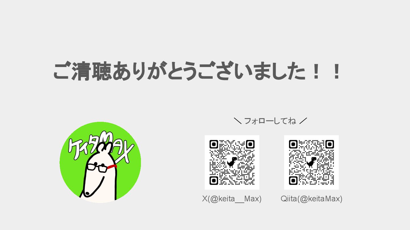 ご清聴ありがとうございました!! \ フォローしてね / X(@keita__Max) Qiita(@keitaMax)