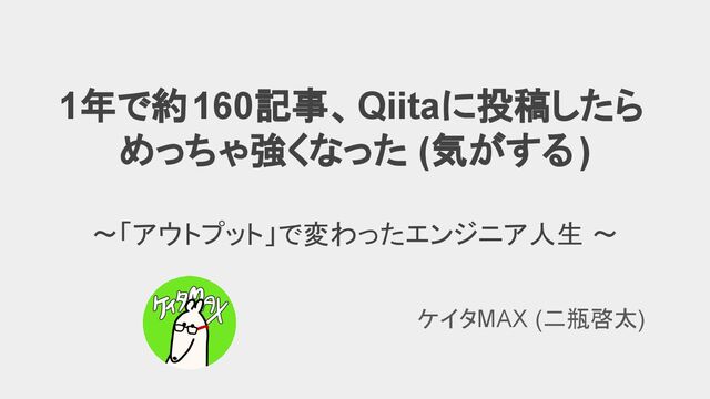 1年で約160記事、Qiitaに投稿したら めっちゃ強くなった (気がする) 〜「アウトプット」で変わったエンジニア人生 〜 ケイタMAX (二瓶啓太)