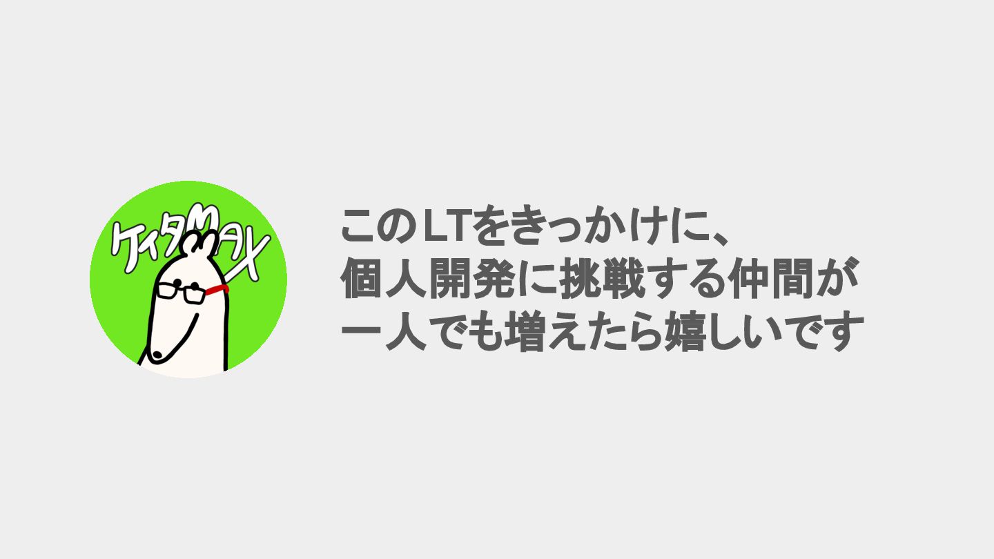 このLTをきっかけに、 個人開発に挑戦する仲間が 一人でも増えたら嬉しいです
