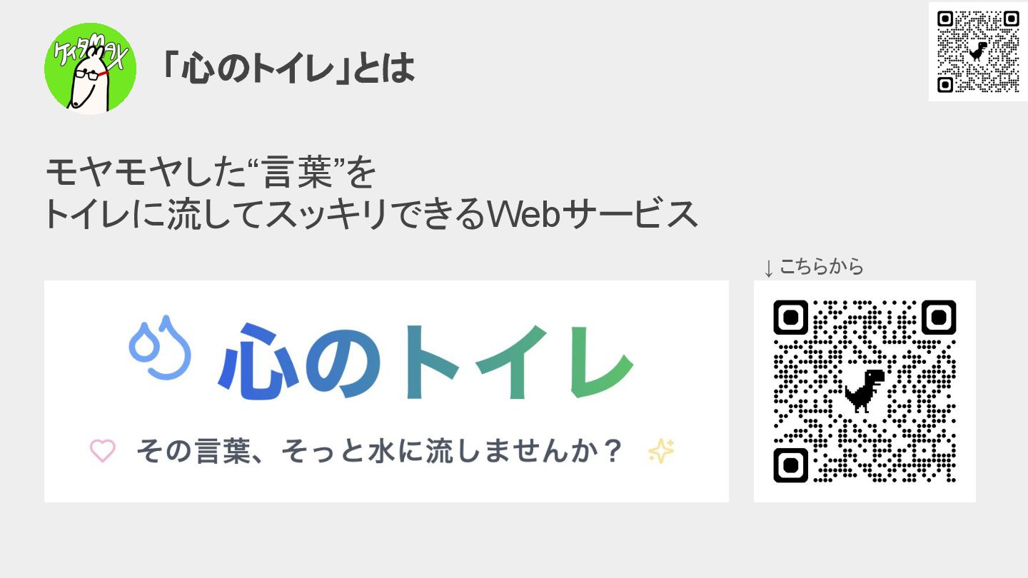 「心のトイレ」とは モヤモヤした“言葉”を トイレに流してスッキリできるWebサービス ↓ こちらから