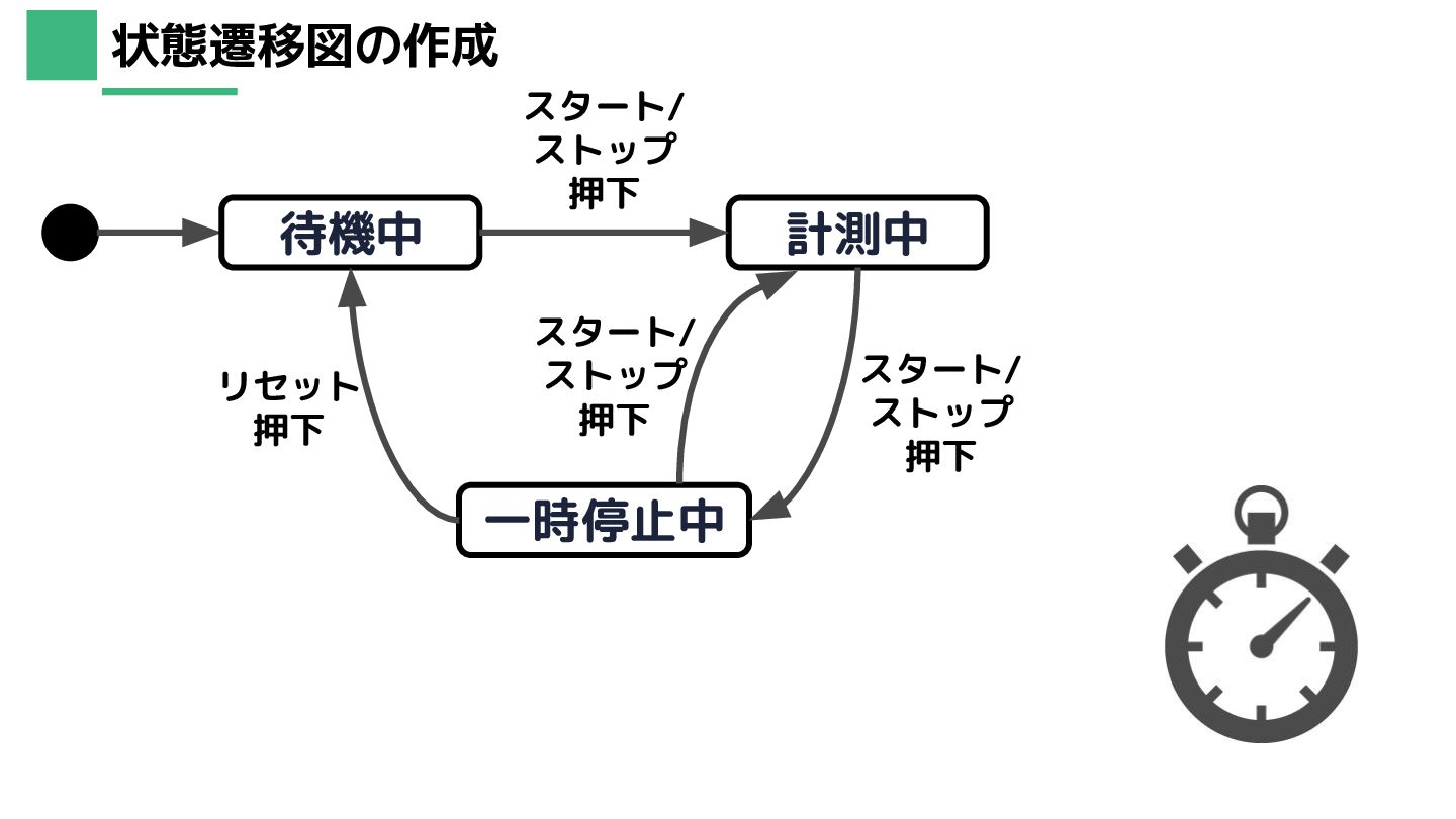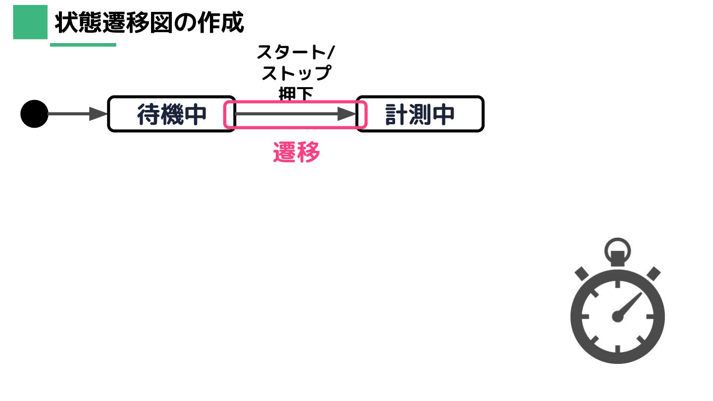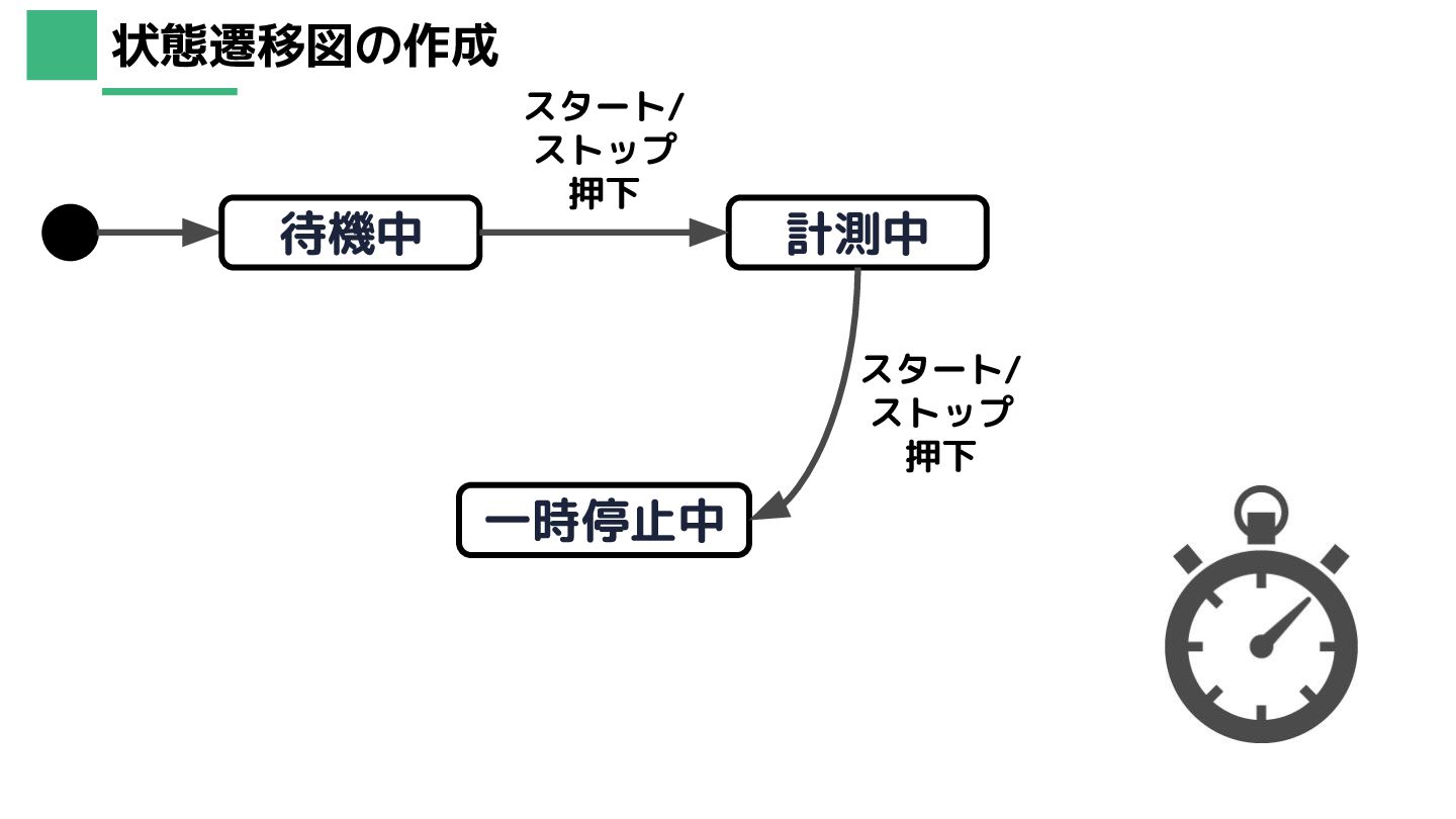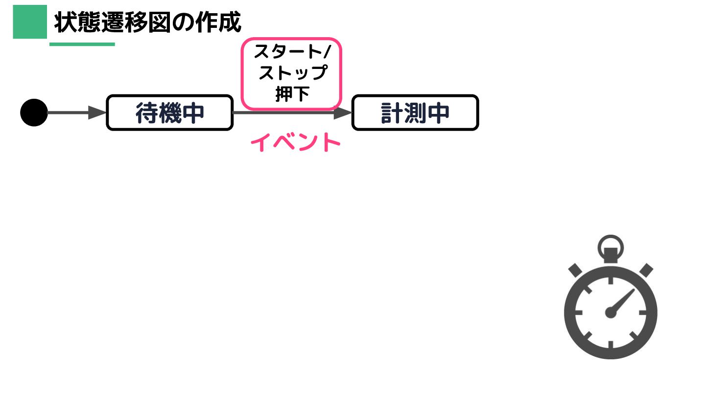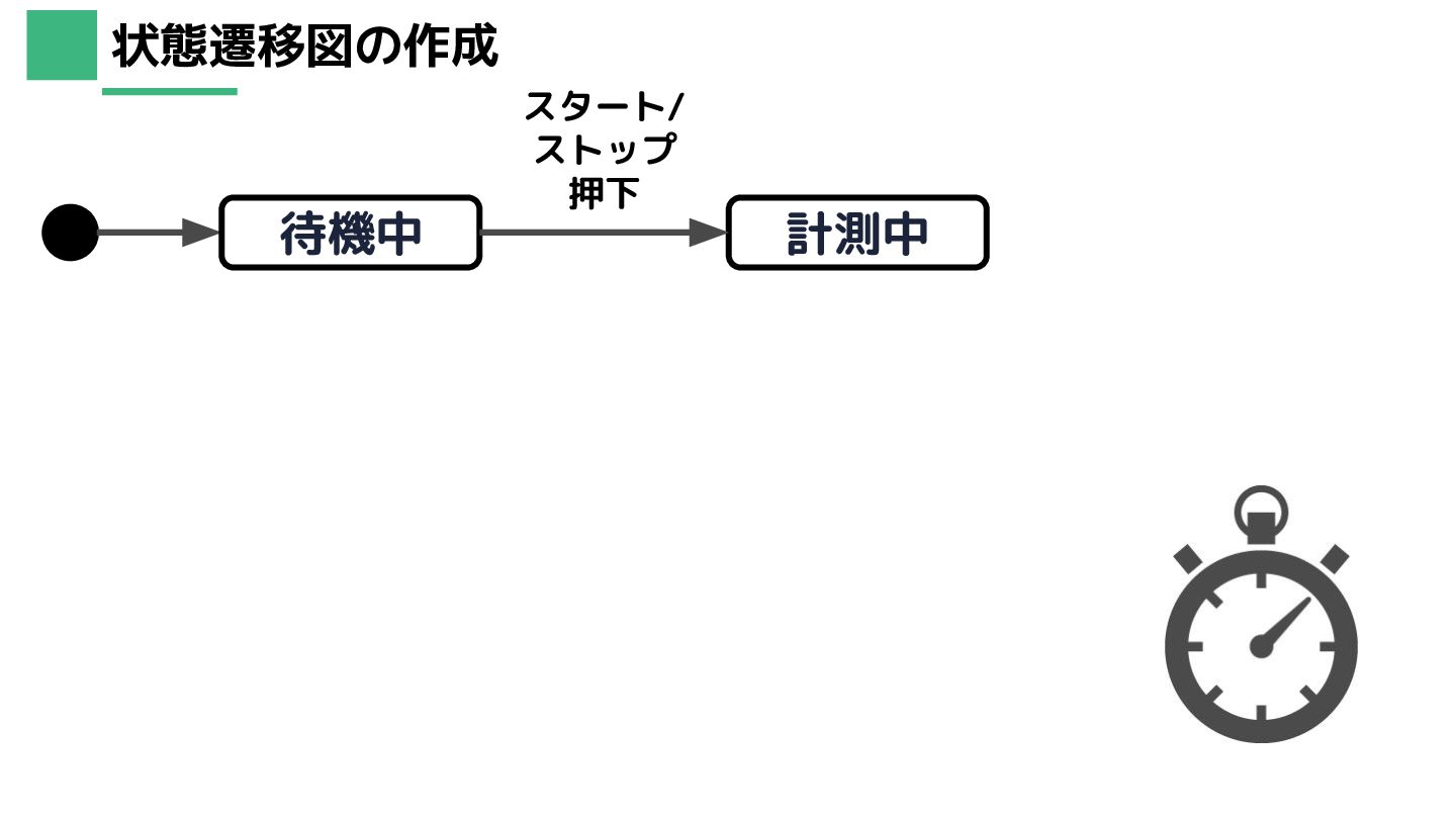 状態遷移図の作成 待機中 計測中 遷移 スタート/ ストップ 押下