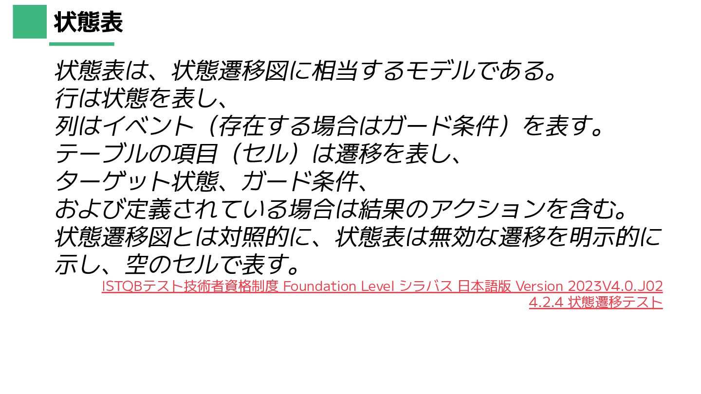シラバス 日本語版 Version 2023V4.0.J02 4.2.4 状態遷移テスト