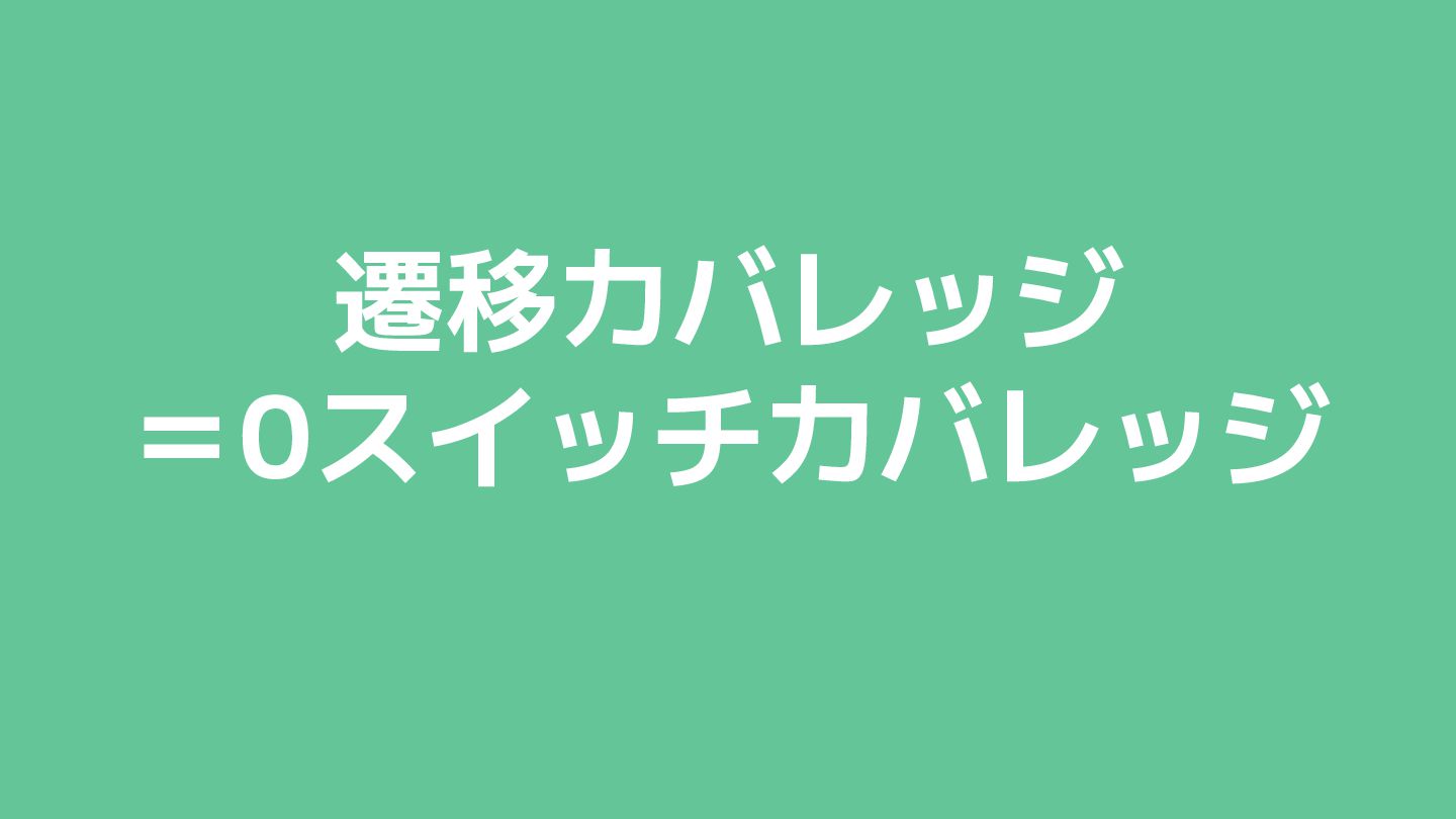 Nスイッチカバレッジ 「N スイッチカバレッジ」は、長さ N+1 でカバーされた スイッチの数を意味し、その長さのスイッチの総数の パーセンテージで表す。 例えば、100%の1スイッチカバレッジを達成するには、 2つの連続する遷移のすべての有効なシーケンスを、1 回