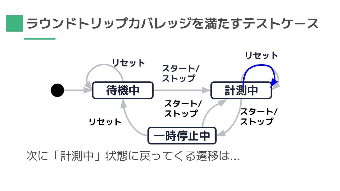 ラウンドトリップカバレッジを満たすテストケース リセット 待機中 計測中 スタート/ ストップ 一時停止中 スタート/ ストップ スタート/