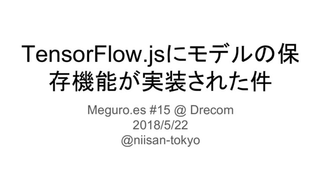 TensorFlow.jsにモデルの保 存機能が実装された件 Meguro.es #15 @ Drecom 2018/5/22 @niisan-tokyo