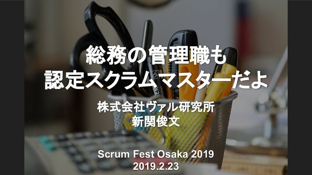総務の管理職も 認定スクラムマスターだよ 株式会社ヴァル研究所 新関俊文 Scrum Fest Osaka 2019 2019.2.23