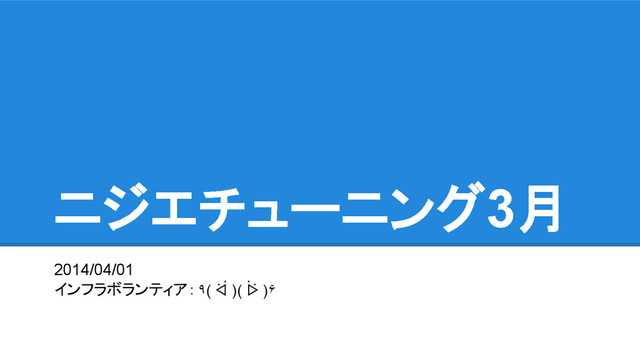 コロコロ変わる • インフラ・バックエンドのボランティアスタッフです • 2014/03/18にJoin • 絵は描いてみたいので練習してたり お手柔らかにおねがいします!