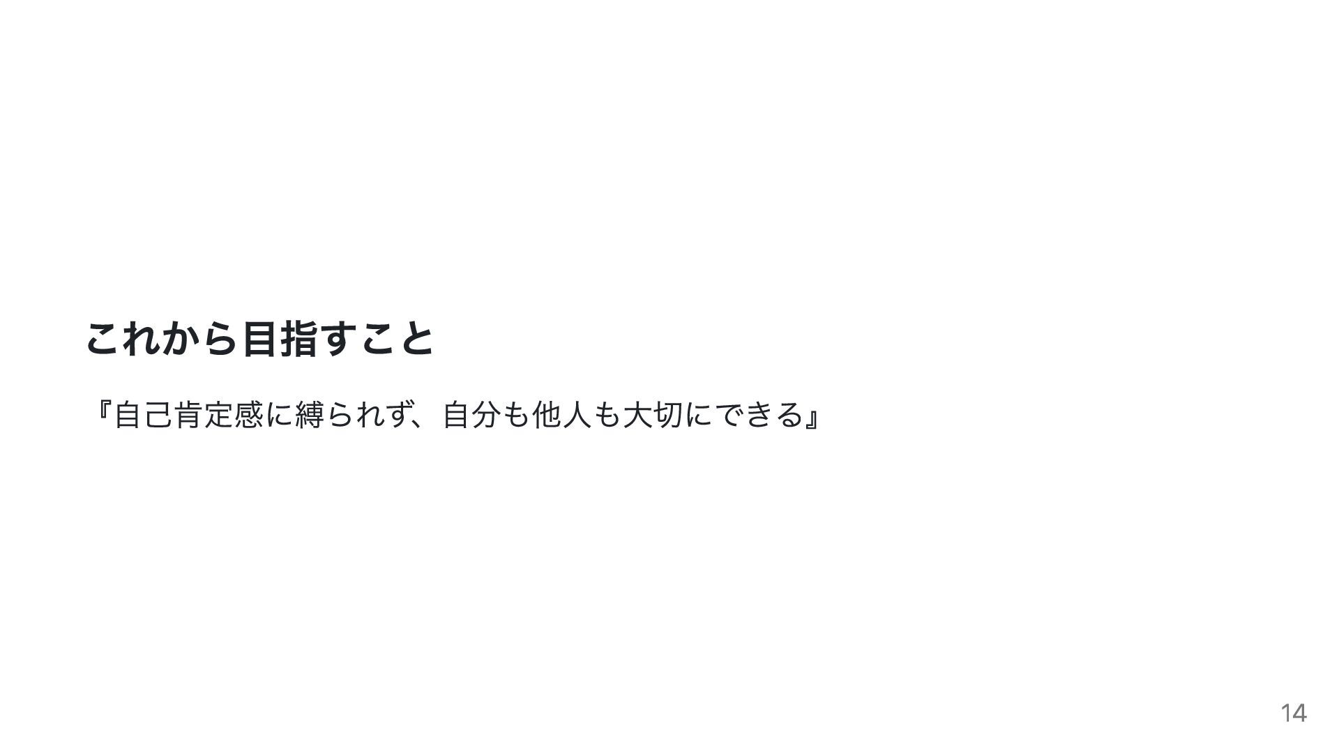 これから目指すこと 『自己肯定感に縛られず、自分も他人も大切にできる』 14