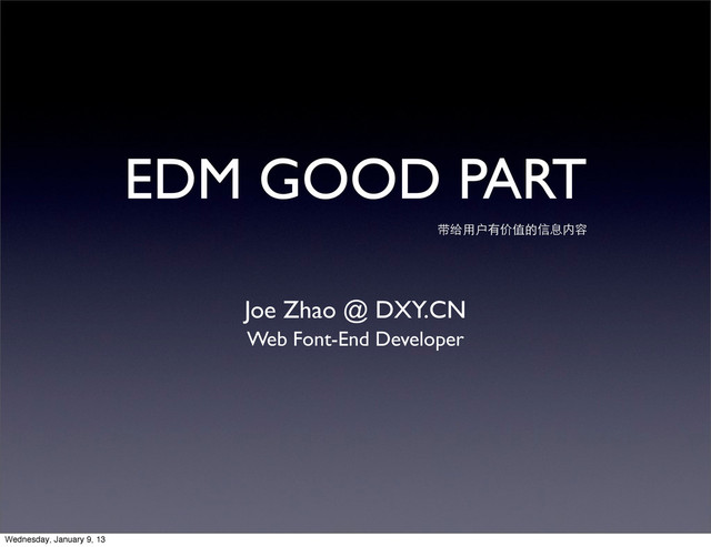 EDM GOOD PART Joe Zhao @ DXY.CN Web Font-End Developer