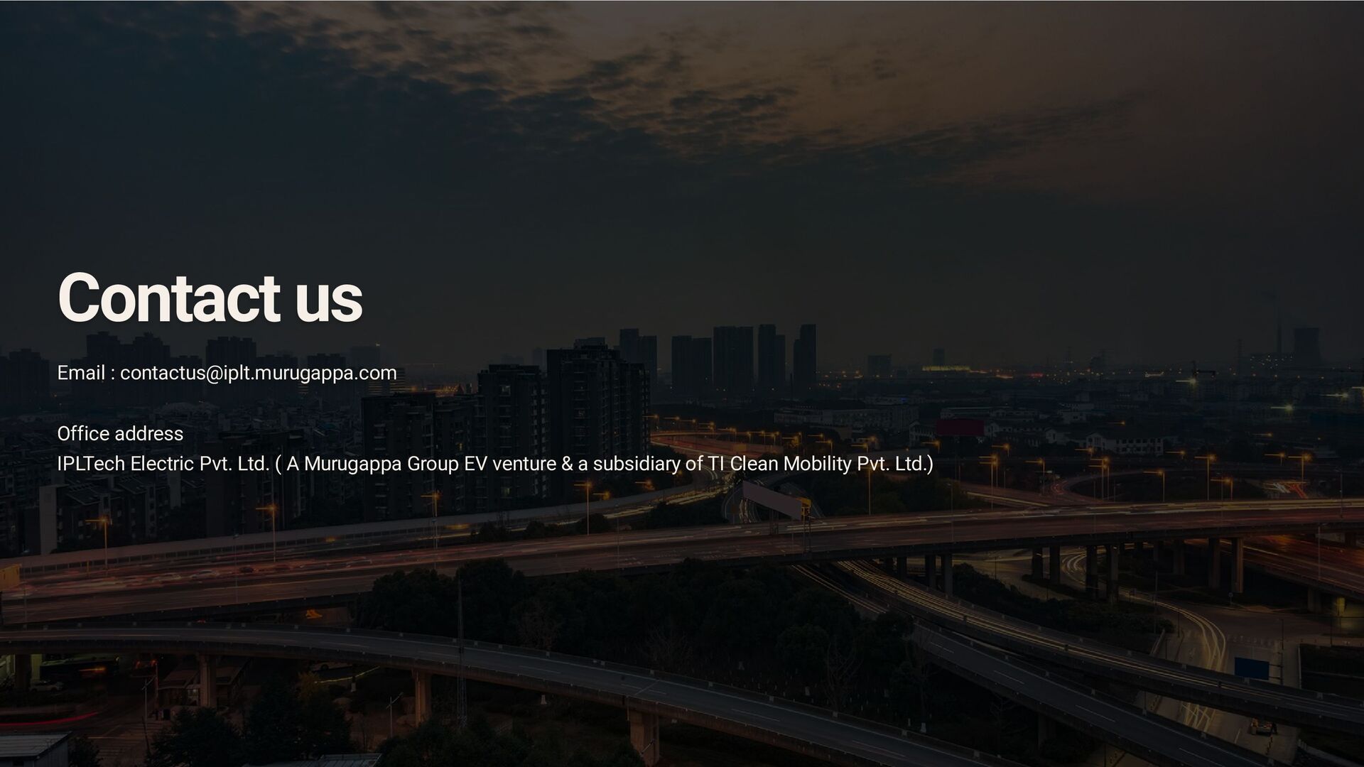 Office address Office address IPLTech Electric Pvt. Ltd. ( A Murugappa Group EV venture & a subsidiary of TI Clean Mobility Pvt. Ltd.) IPLTech Electric Pvt. Ltd. ( A Murugappa Group EV venture & a subsidiary of TI Clean Mobility Pvt. Ltd.)
