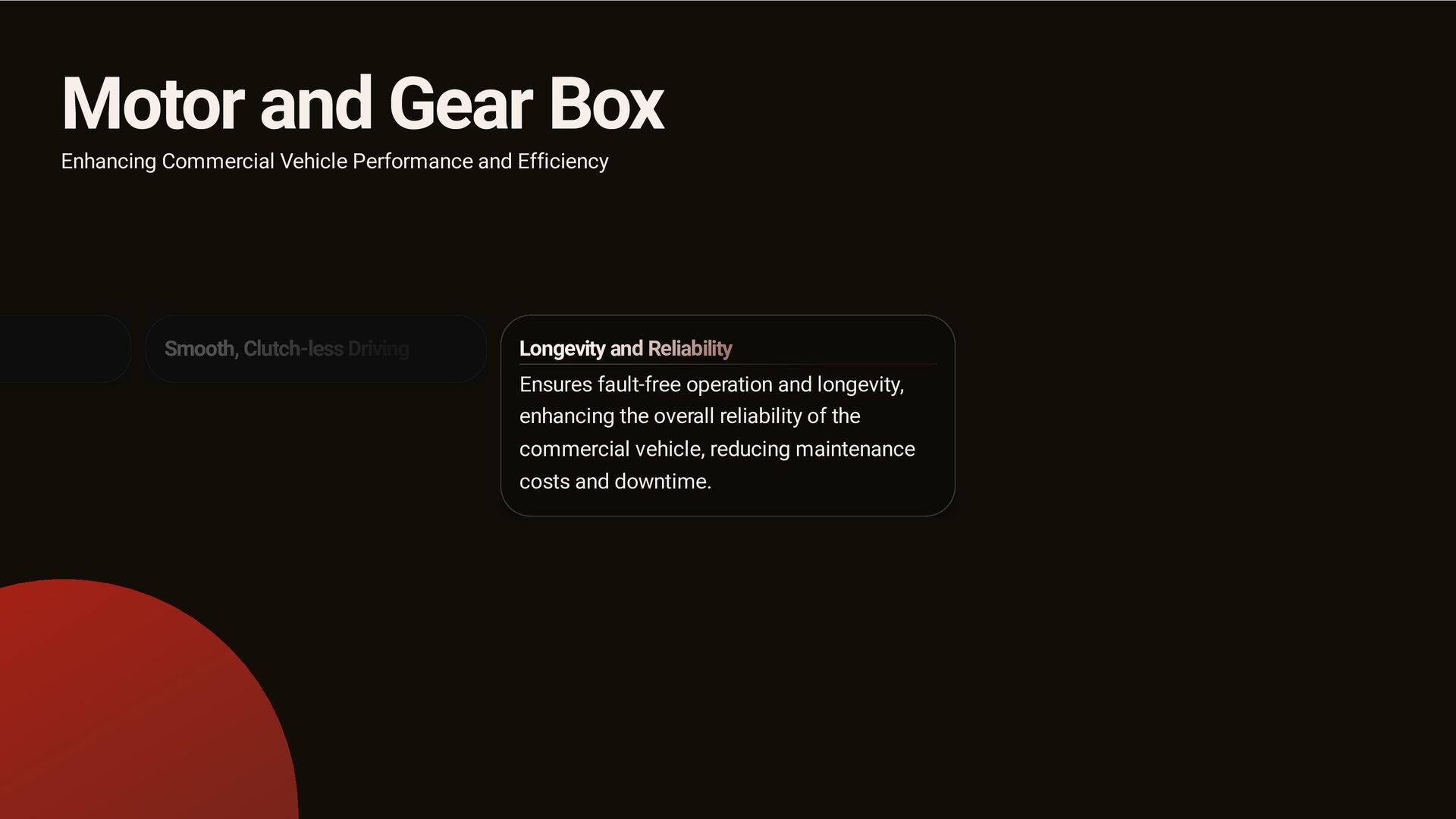 Longevity and Reliability Ensures fault-free operation and longevity, enhancing the overall reliability of the commercial vehicle, reducing maintenance costs and downtime.