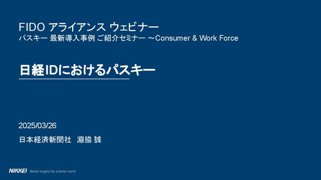 FIDO アライアンス ウェビナー パスキー 最新導入事例 紹介セミナーで日本経済新聞社の淵脇さんが発表したスライドです。