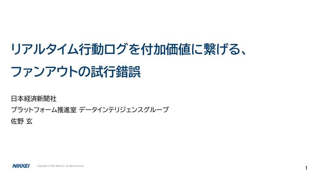 2025 Nikkei Inc. All rights reserved. 3 今日お話しするのは… 集めたログから「もっと価値を創る」ために、ログの「供給先」を増やしました。 どんな用途にどんな方法をとったのか、どう考えどう実装したかを紹介します。 より良い方法があるよ、とお気付きの方からの助言をいただけると嬉しいです!