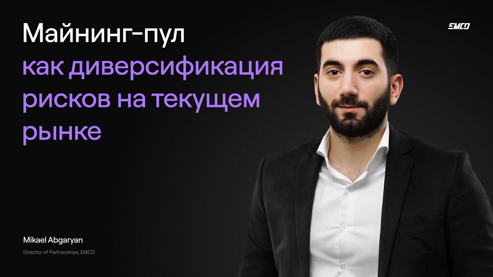 Презентация Микаэля Абгаряна из EMCD о том, как майнинг-пул может стать инструментом диверсификации рисков на нестабильном рынке майнинга.