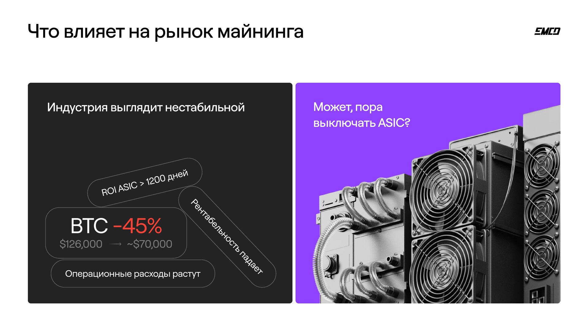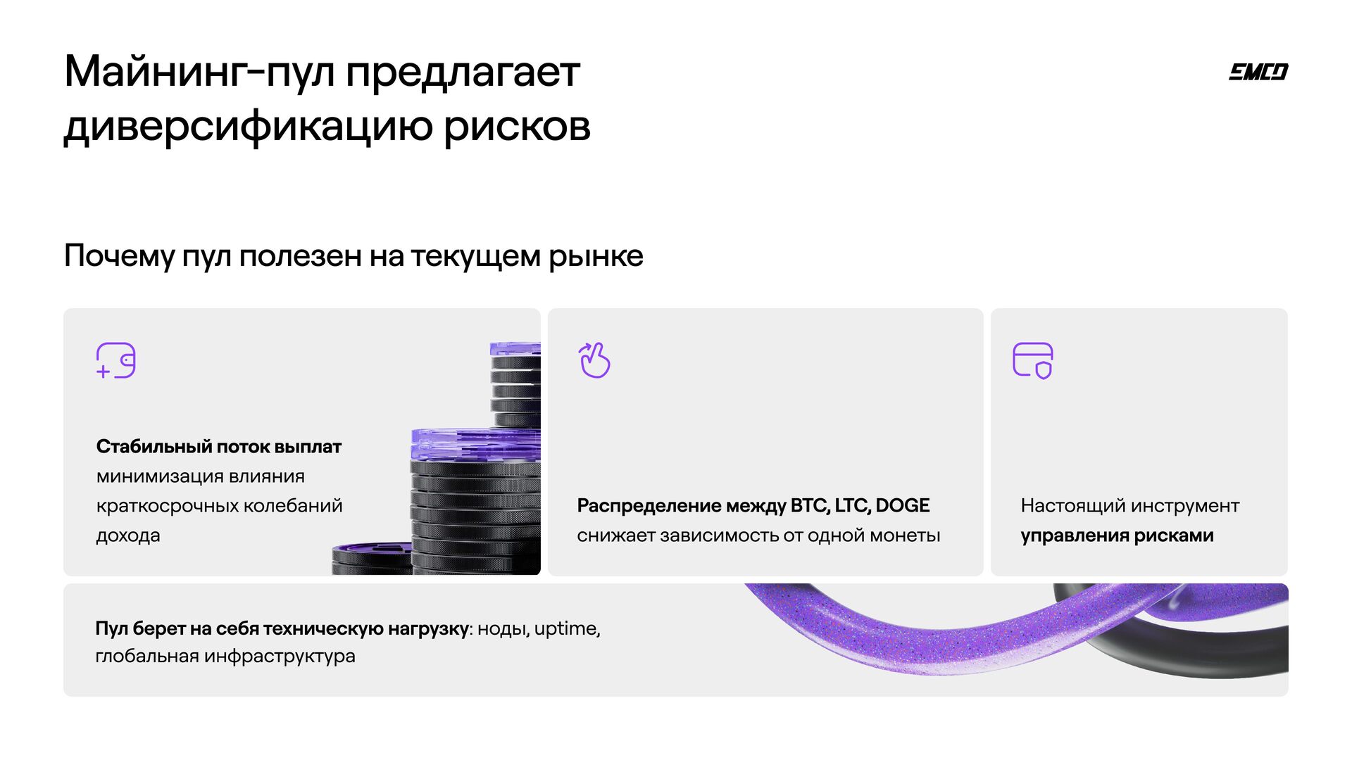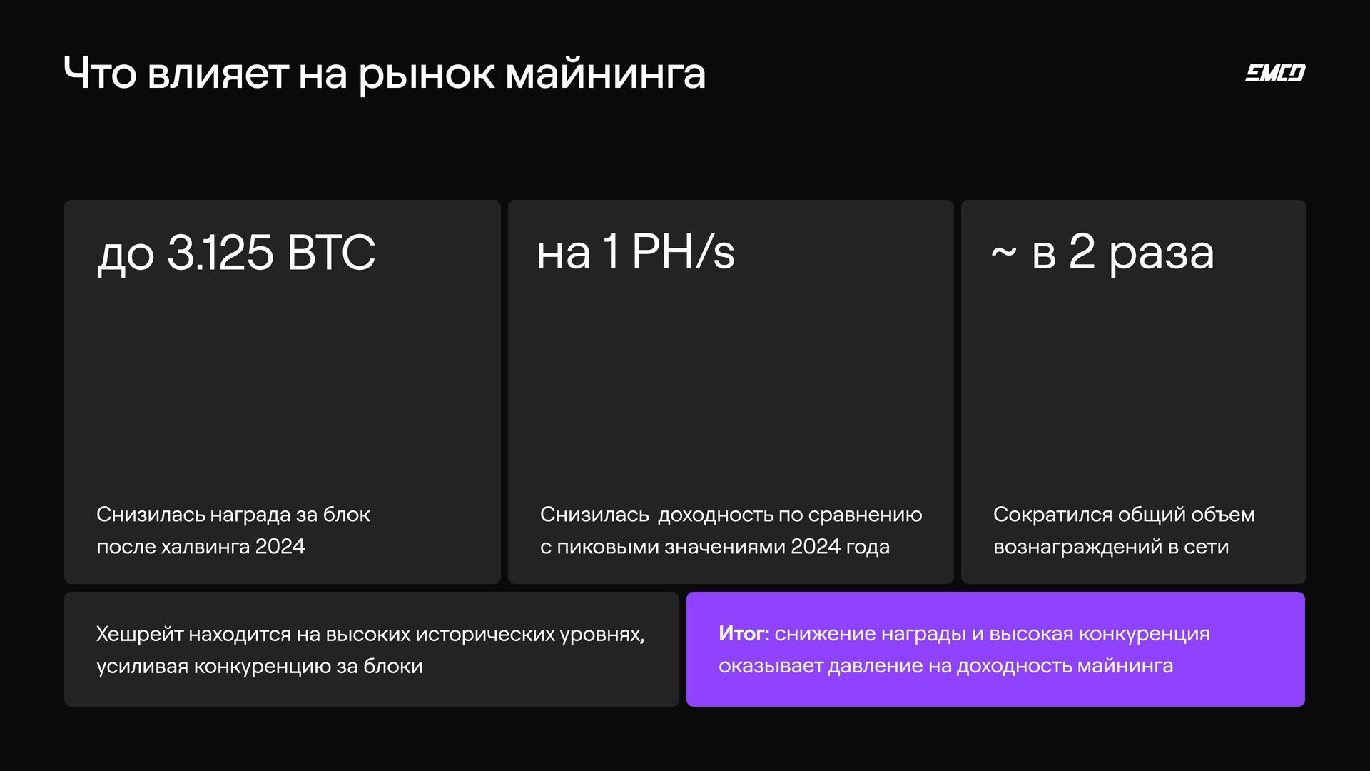 В ней рассматриваются ключевые вызовы отрасли, влияние текущих рыночных условий на доходность и подходы EMCD к повышению стабильности выплат и эффективности работы майнеров.