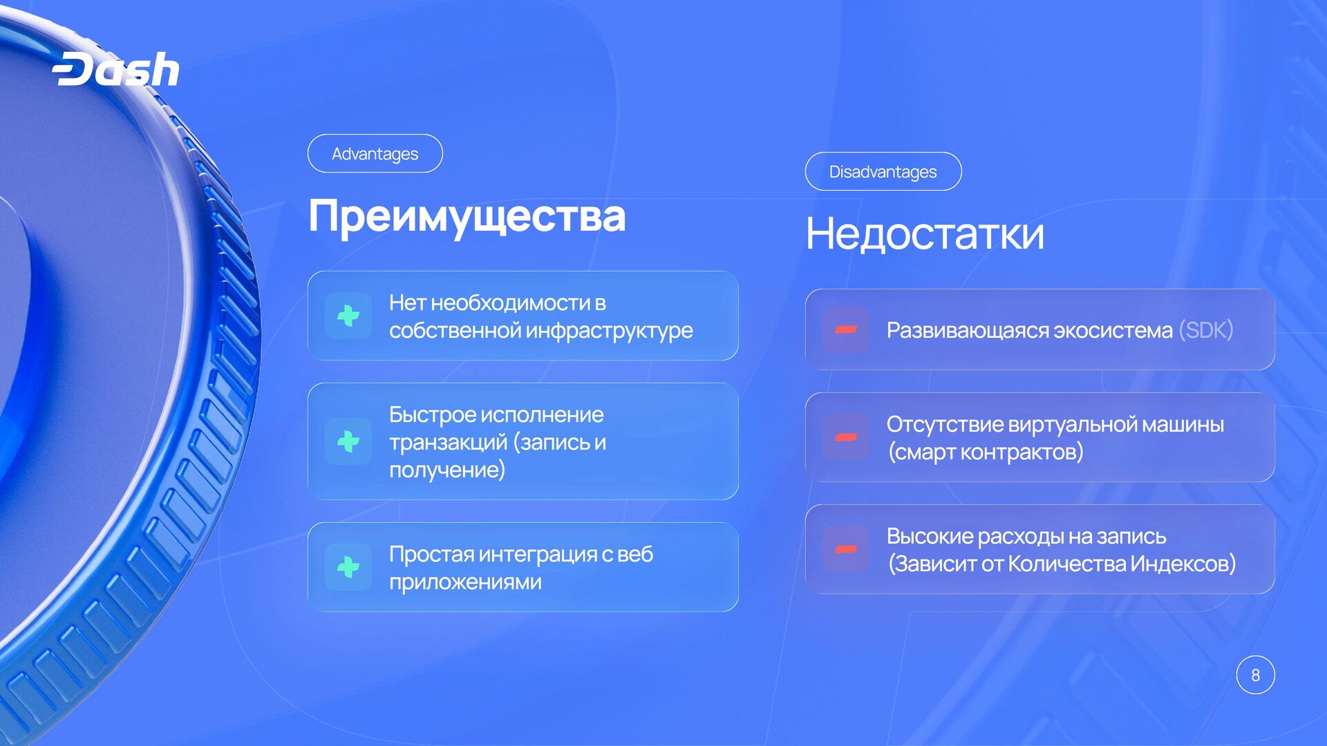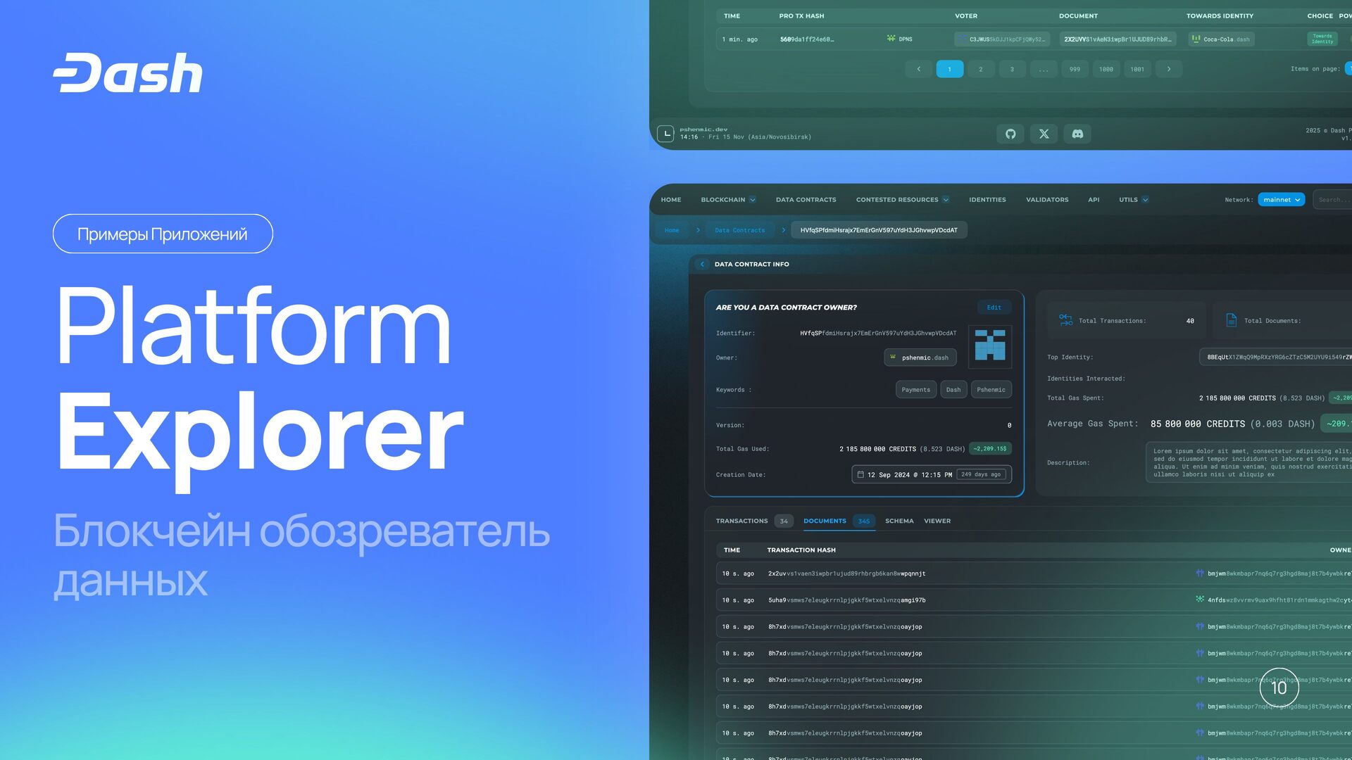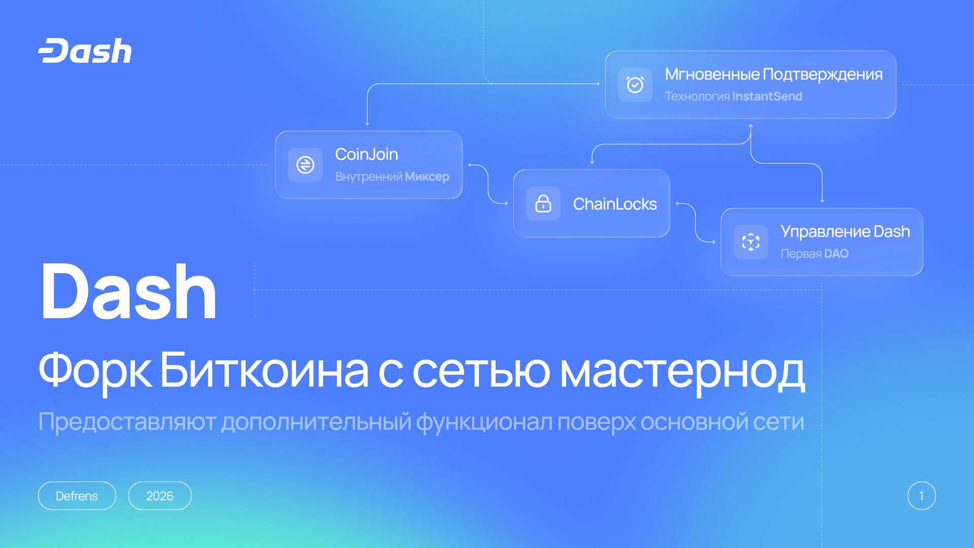 Михаил Пшеничников (aka pshenmic) — независимый разработчик Dash. Презентация поосвящена архитектуре Dash Evolution как Layer 2-решения поверх сети Dash: мастернодам, Tenderdash с Proof of Stake и быстрой финализацией, хранилищу Drive, дата-контрактам, документам и DAPI как децентрализованному API для работы с данными блокчейна.