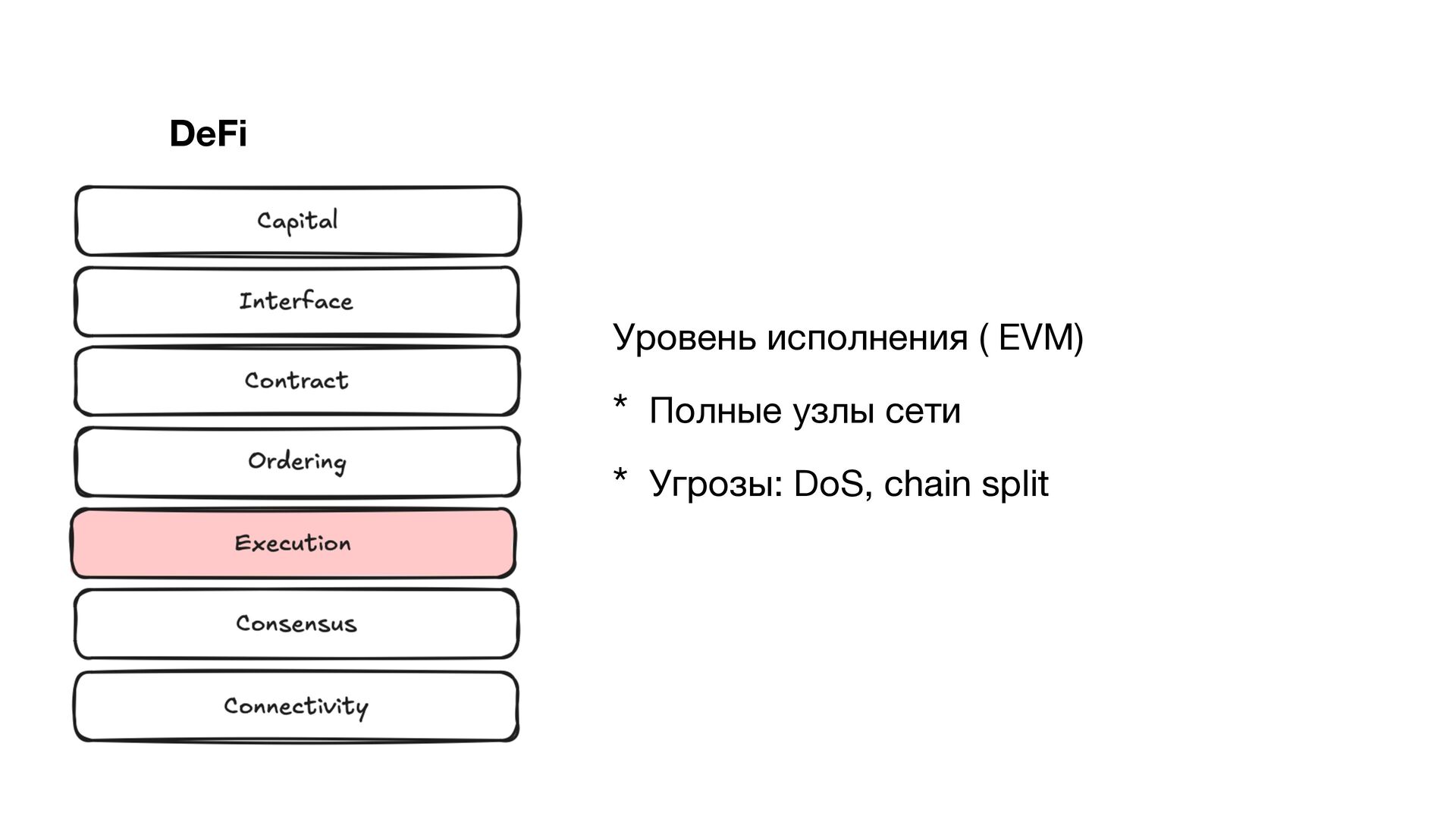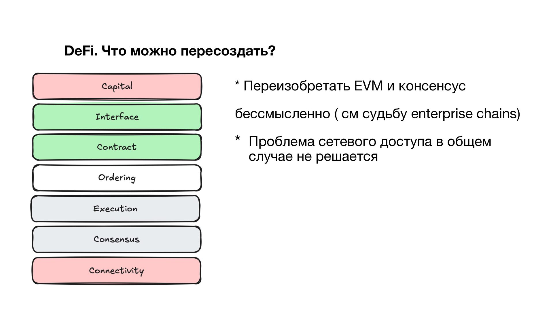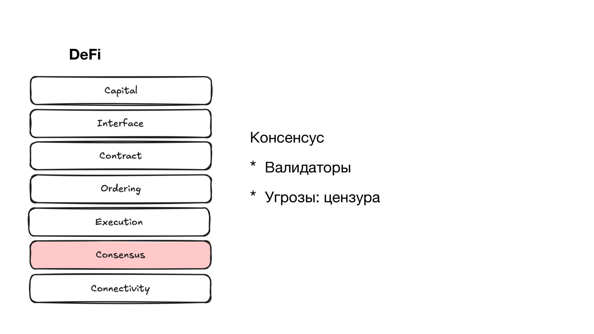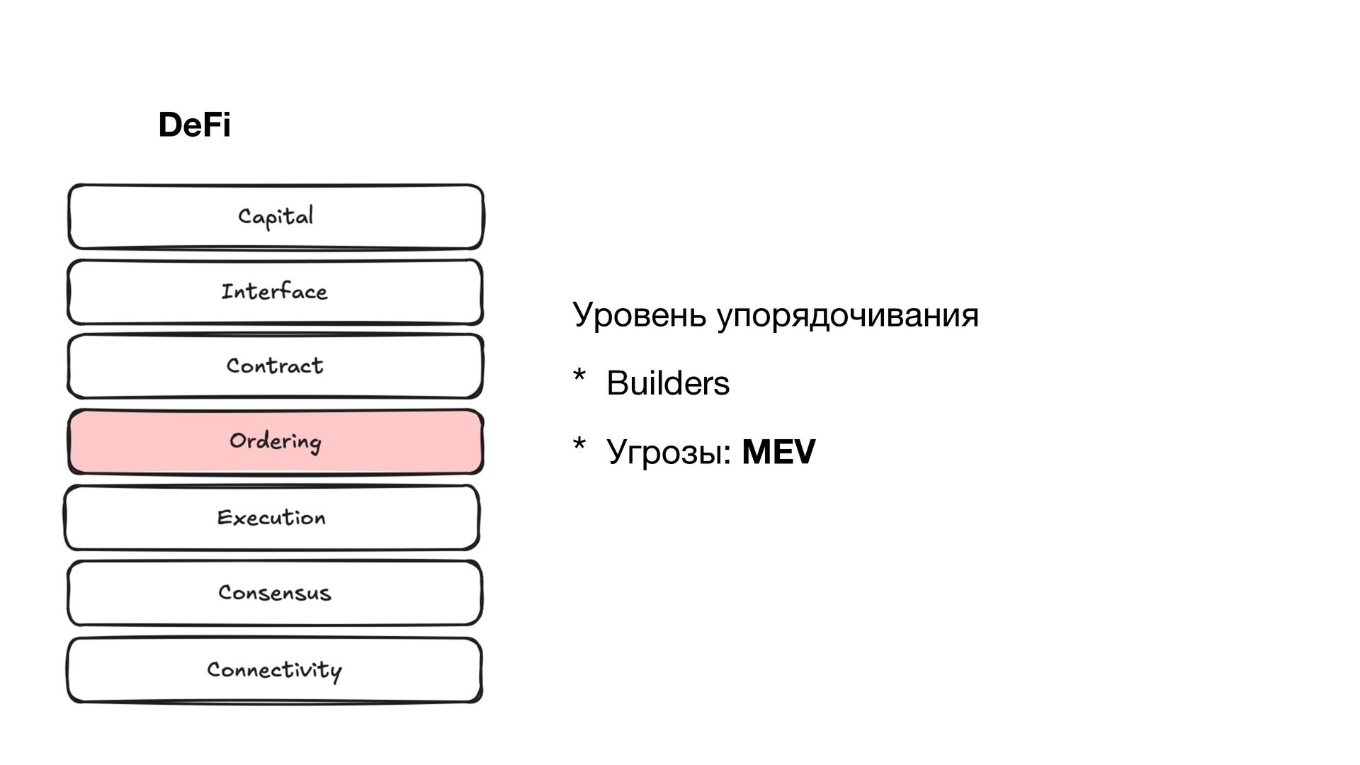 Презентация Владимира Попова, исполнительного директора Центра развития блокчейн Сбера на мероприятии DeFrens x Dash, посвящена роли приватности для финансовых институтов в DeFi и показывает, как привычные банковские операции можно разложить на уровни инфраструктуры, исполнения, упорядочивания, контрактов, интерфейсов и капитала, выделяя для каждого слоя ключевых участников и основные риски — от цензуры и MEV до утечек и уязвимостей.