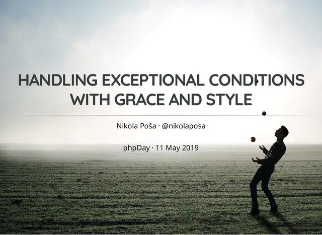 This talk is an in-depth study about practices for dealing with exceptional conditions that promote code that is clean, consistent and convenient to work with. Special attention is given to applicable best practices for managing exceptions in a proper way, including formatting exception messages using named constructors, component-level exception type, exception wrapping.