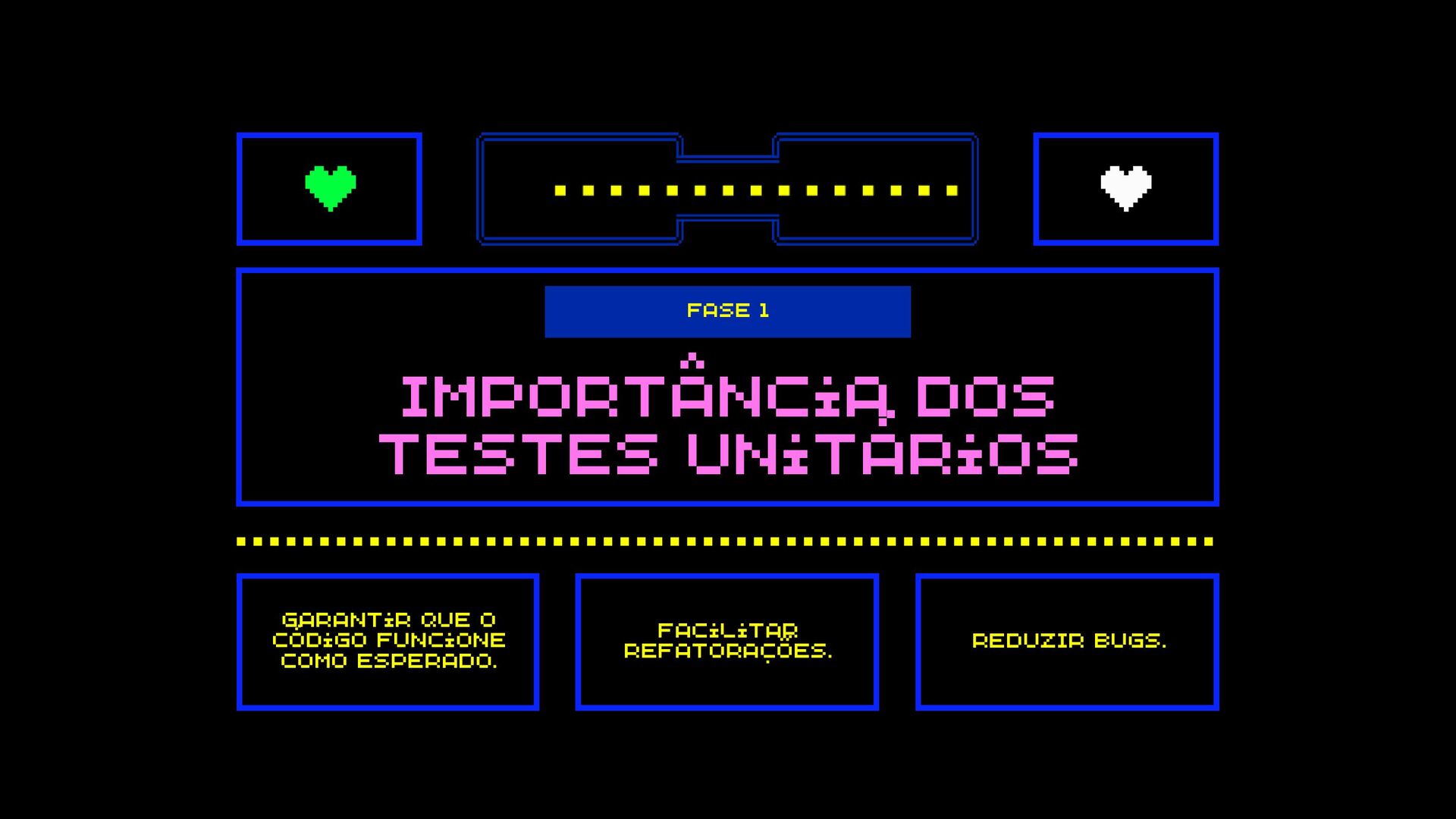 refatorações. Garantir que o código funcione como esperado. REDUZIr bugs. Facilitar refatorações. FASE 1