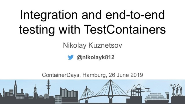 Integration and end-to-end testing with TestСontainers Nikolay Kuznetsov @nikolayk812 ContainerDays,