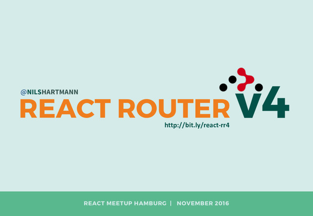 (Released: yesterday...) • Be careful! Use at your own risk! Docs and sources • https://react-router.now.sh/ • https://github.com/ReactTraining/react-router/tree/v4