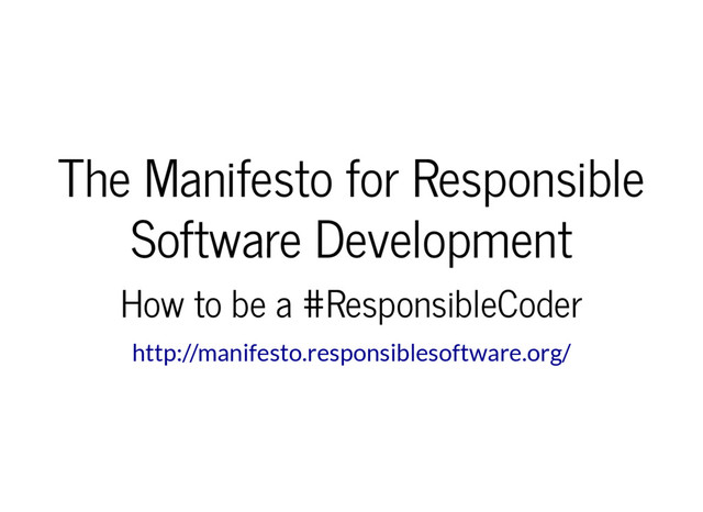 #ResponsibleCoder http://manifesto.responsiblesoftware.org/