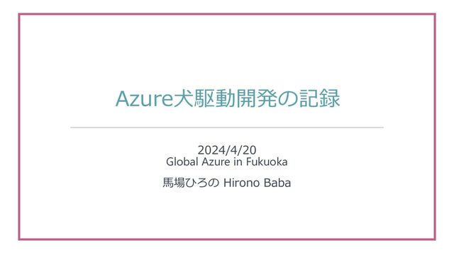 Azure犬駆動開発の記録 2024/4/20 Global Azure in Fukuoka 馬場ひろの Hirono Baba