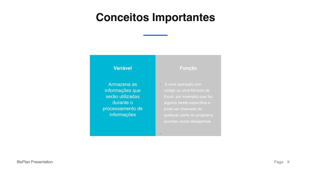 que serão utilizadas durante o processamento de informações Função • é uma operação (um código ou uma fórmula de Excel, por exemplo) que faz alguma tarefa específica e pode ser chamado de qualquer parte do programa quantas vezes desejarmos. •