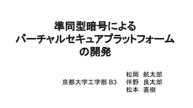 準同型暗号による バーチャルセキュアプラットフォーム の開発 松岡 航太郎 伴野 良太郎 松本 直樹 京都大学工学部 B3
