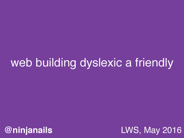 My London Web Standards talk from 16th May 2016, where I cover some design and development techniques that you can use to help Dyslexics, which will also benefit other users.