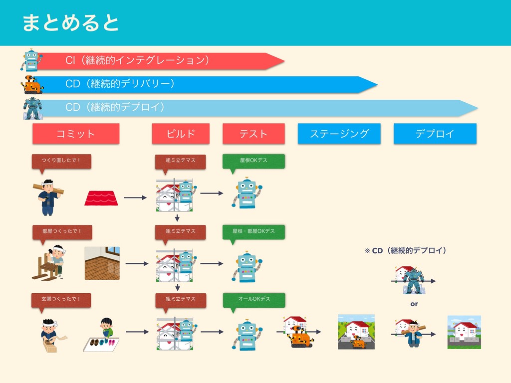 CI/CDͬͯʁ ܧଓత ౷߹ CIʢContinuous Integrationʣ ɹιϑτΣΞ։ൃʹ͓͍ͯɺϏϧυ ɹςετΛࣗಈԽ͠ɺܧଓతʹ࣮ࢪ͢Δख๏