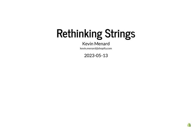 This talk takes a high-level look at Ruby's strings and encodings, highlighting potentially problematic areas and suggesting ways to improve. While the emphasis is on the logical interface for text and binary data, we'll also look at the performance ramifications of the current design and how that might improve as well.