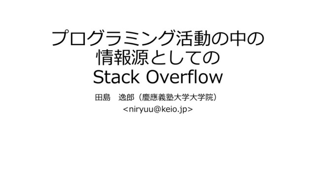 building, Microprocess and Microprogrmming. 1985, vol.15, no.5, p.253-261. • 「ソーシャルプログラマー」の興隆:様々なコミュニケー ションチャネルを利用しながら情報を共有 • Storey, Margaret-Anne; Zagalsky, Alexey; Filho, Fermando Figueira; Singer, Leif; German, Daniel M.. How Social and Communication Channels Shape and Challenge a Participatory Culture in Software Development. IEEE TRANSAC- TIONS ON SOFTWARE ENGINEERING. 2017, vol.43, no.2, p.185-204. • その1つとして,2008年にStack Overflow(SO)が登場 • プログラマー同士の質問回答の形で公開されたアクセス可 能な知識を増やすことを目指しているサイト
