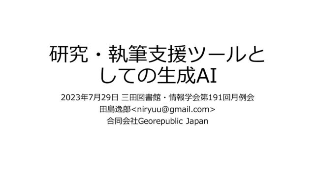 "Generative AI as tools of writing and research support" at 191st Monthly Meeting of Mita Society of Library and Information Science