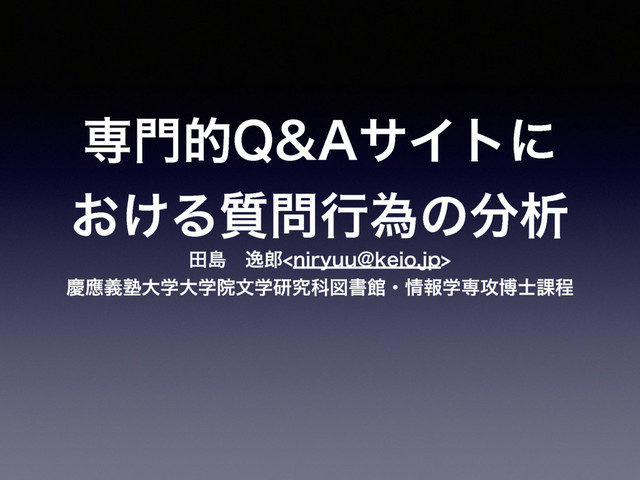 ઐత2"αΠτʹ ͓͚Δ࣭ߦҝͷੳ ాౡɹҳOJSZVV!LFJPKQ ܚጯٛक़େֶେֶӃจֶݚڀՊਤॻؗɾใֶઐ߈ത࢜՝ఔ