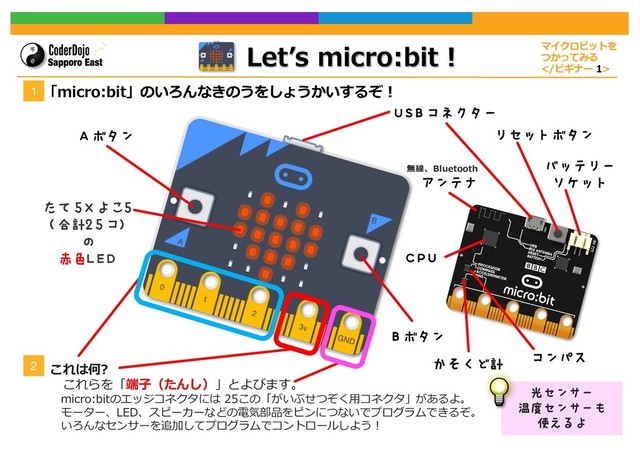 $-*$, 4)",& 164) %3"(%301 Scratch Basics GETTING STARTED Card 1 of 7 I’m Learning: Scratch 1 These Sushi Cards are going to help you learn to create computer programs in Scratch. To do this, you’re going to need to have Scratch! You can either download it and install it on your computer by going to dojo.soy/ downloadscratch or use it in your web browser by going to dojo.soy/usescratch. Do one of these two and once you’re set up, move on to the next step. 2 Once you sign-in to the online Scratch, or load it on your computer, you’ll see a screen like the one below. This screen has a few parts you’ll need to remember. They are labeled in the picture below. Stage Current Sprite Pannel Start Program Stop Program 1 Scratch. To do this, you’re going to need to have Scratch! You can either download it and install it on your computer by downloadscratch or use it in your web browser by going to do one of these two and once you’re set up, move on to the next 2 Once you sign-in to the online Scratch, or load it on your com screen like the one below. This screen has a few parts you’ll need to remember. They are below. Stage Sprite List Code Blocks PalleGe Cur Start Program Stop Program やじるしキーとボタンをこうかん ジャンプをシェイクにこうかん うごきを センシングできる ͜͜Λ ͜͏͔Μ ͜͜Λ ͜͏͔Μ ͜͜Λ ͜͏͔Μ ͍ͬͨΜɺ ϓϩδΣΫτΛ อଘʢ΄ͧΜʣ ͠Α͏ʂ -&'5 3*()5