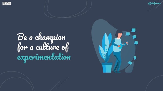lot of time MacGyvering rather than following step-by-step instructions from a book. • Champions for experimentation become a unique (or exclusive) source of customer and market insights. • Champions for experimentation connect techniques to outcomes, and outcomes to culture change. 13