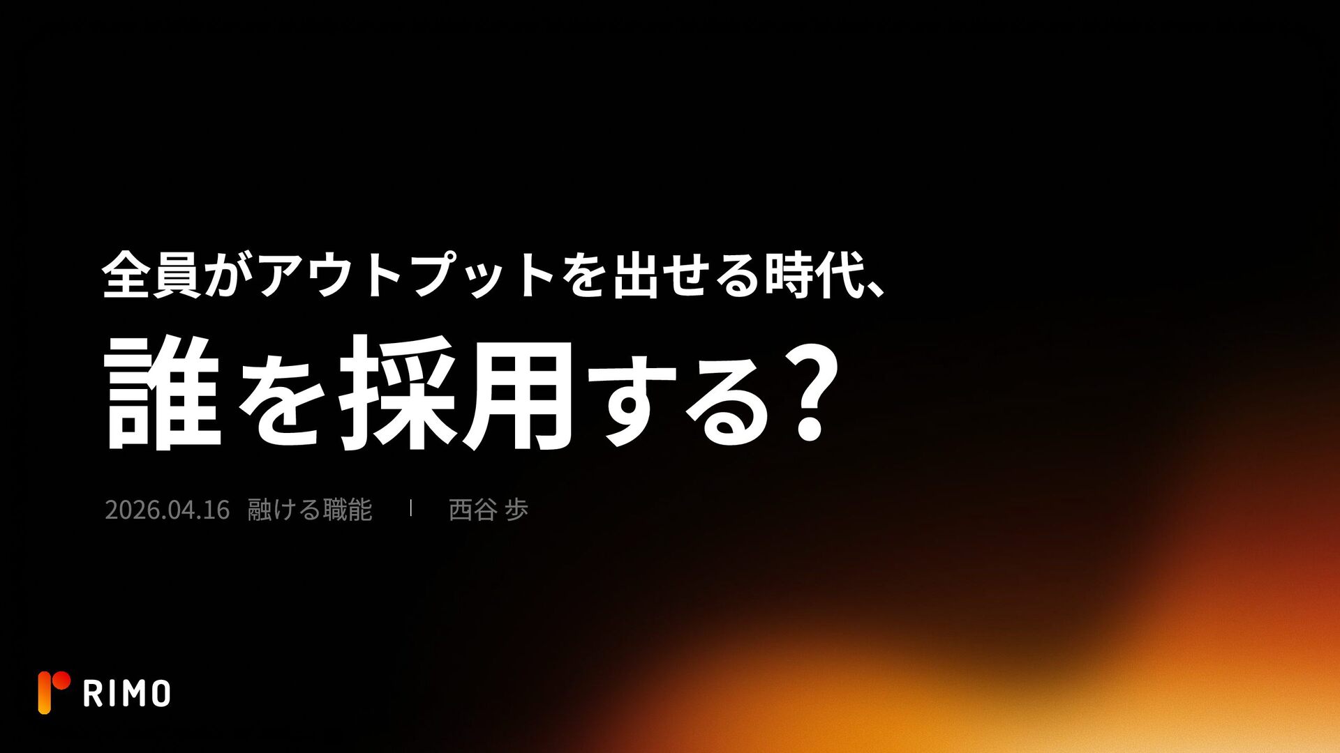 全員がアウトプットを出せる時代、 誰を採用する? 2026.04.16 融ける職能 西谷 歩