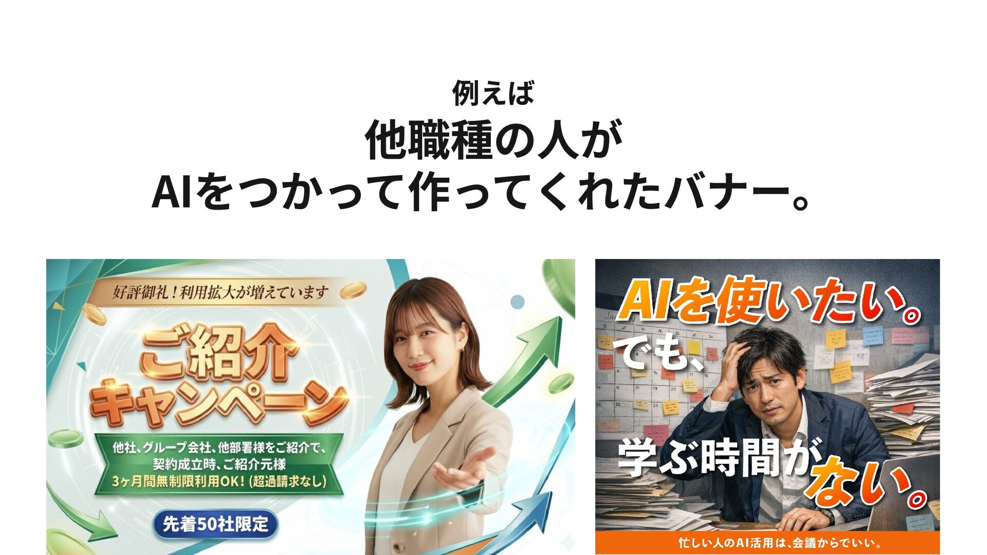 例えば 他職種の人が AIをつかって作ってくれたバナー。