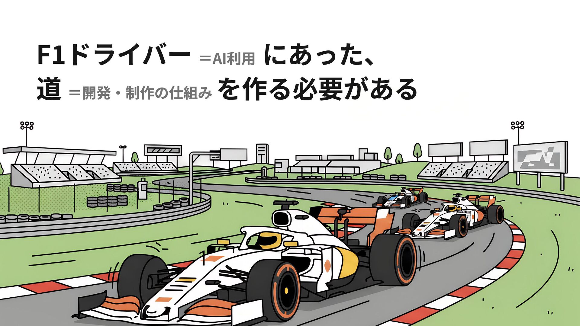 F1ドライバー =AI利用 にあった、 道 =開発・制作の仕組み を作る必要がある