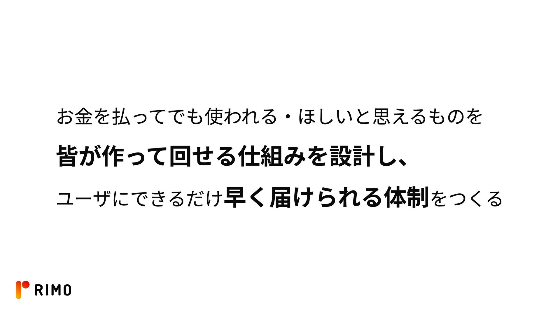 お金を払ってでも使われる・ほしいと思えるものを 皆が作って回せる仕組みを設計し、 ユーザにできるだけ早く届けられる体制をつくる